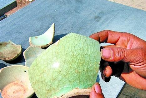 昨日(3日)上午,普查小組來(lái)到水庫(kù),只見(jiàn)這里依山傍水,盛產(chǎn)高嶺土和釉水等礦產(chǎn)資源,具備燒制青瓷的條件。在水庫(kù)原儲(chǔ)水處發(fā)現(xiàn)了大量陶瓷片,堆積層厚達(dá)1至5米。普查組專家隨手拿起一件碎瓷,碗底有一個(gè)明顯的乳心。專家稱,這是明顯的元代青瓷特色。