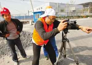 趁著工人們吃飯午休的時間,王建平和志愿者羅炳炎、周燕棣來到世博主題館工地:取景、選角度、架三腳架……一陣忙碌,世博工地上就有了一處露天“攝影棚”。提前一天接到通知的工人們,剛放下手中的活就跑到攝影師前,擺起了各種姿勢。