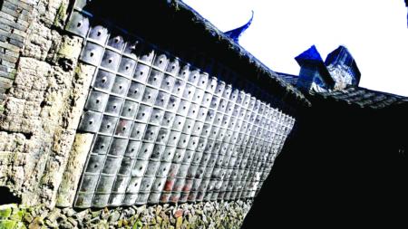 記者還注意到,寨子內還有不少機關,城墻下半部有幾十個小洞,用來安放照明燈具便于夜間行走。在城墻的上半部,每隔十幾米就有一個外小內大的喇叭形梯形窗戶,站在窗前,可以清楚觀察外面動靜,而屋外看不到里面的情況。