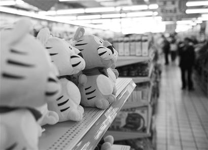 記者走訪廈門各大賣場(chǎng)被告知:今年凡是跟老虎有關(guān)的都很好賣,不過,銷量不及網(wǎng)絡(luò)!岸际悄贻p人買,他們?cè)诰W(wǎng)上能找到更便宜、種類更多的老虎!币晃毁u場(chǎng)人員說!
