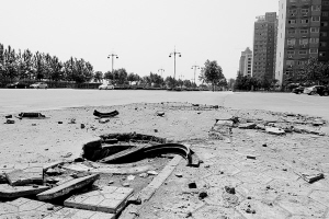 昨日10時許,記者在龍卡公園東南角看到,這些窨井有三四米深,標有“高壓危險”字樣的窨井蓋,有的被炸得四分五裂;有的井圈被炸斷,井蓋飛出去四五米遠;離爆炸中心十米遠的地方散落了很多水泥碎塊,公園便道上停放的自行車上也落滿灰塵,便道磚也損毀嚴重。