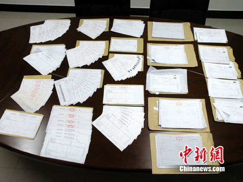 中新網杭州7月9日電(記者 趙曄嬌 實習生 吳顯 通訊員 趙錚 張成)今天,杭州市公安局濱江分局發(fā)布消息稱,通過一張“代開發(fā)票”的名片提供的線索,浙江省杭州市公安局濱江分局日前成功破獲了一起涉案金額巨大的非法出售發(fā)票案。主犯韓某等4名犯罪嫌疑人被刑事拘留,現場收繳14種發(fā)票共計3萬2千余份,繳獲各類私刻公章115枚及大量打印機、電腦等制作假發(fā)票工具。