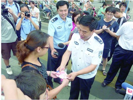 原來,省會文明辦、石家莊市公安交管局決定出資10萬元,在7月10日—7月21日期間,以宣傳倡導、志愿勸導、獎懲引導為著眼點,按照“不定時間、不定路口、不定對象”的原則,在全市范圍內集中開展遵守交通法規(guī)獎勵活動,對當天搜索開始后在各路口尋找到的“第一位不闖紅燈的行人”、“第一位不闖紅燈的非機動車騎乘人”進行現(xiàn)場獎勵,每人一次獎勵現(xiàn)金500元,以此激發(fā)和調動廣大市民守法出行、文明出行、安全出行的積極性、自覺性。