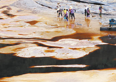 7月3日,紫金礦業(yè)集團(tuán)股份有限公司位于福建上杭縣的紫金山銅礦濕法廠發(fā)生污水滲漏事故,外滲的9100立方米廢水進(jìn)入了被客家人稱為母親河的汀江流域,造成沿江上杭、永定出現(xiàn)魚類死亡和水質(zhì)污染現(xiàn)象。