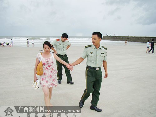 7月17日,一對夫婦從柳州到北海銀灘旅游。其間,丈夫接了一個陌生女子的電話,妻子傷心不已,竟欲投海自盡,幸被景區(qū)救生隊員救起。
