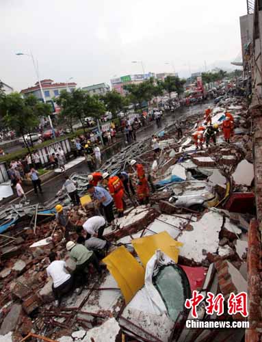 今天下午4點(diǎn)45分,記者趕到現(xiàn)場(chǎng)。發(fā)生事故是巨桑國(guó)際家居博覽中心一幢兩層高的樓房,樓房頂部還架有大型廣告牌,此時(shí)該樓房已有約50米長(zhǎng)的外墻倒塌,現(xiàn)場(chǎng)已經(jīng)設(shè)置起警戒,公安、消防、醫(yī)院等部門的救援人員及巨桑工作人員等近百人正在倒塌現(xiàn)場(chǎng)全力展開搜救工作,衢州市及柯城區(qū)有關(guān)領(lǐng)導(dǎo)也已趕到現(xiàn)場(chǎng)。