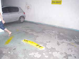 記者隨即來到大廈負(fù)二樓的停車場,一睹機械車位的芳容!昂眉一铮淮蟮耐\噲隼镞真的停放了不少車輛!痹瓉,為了將停車位數(shù)量發(fā)揮到最大極限,這里的停車場充分利用了樓層的空間,借助機械設(shè)備將停車場分為上下兩層,使停車數(shù)量翻了一倍。那么市民爆料的人防工程停車位在那里呢?記者注意到,在機械車位的對面地面上還停著不少輛汽車,奇怪的是,每個停車位下面都安裝了地鎖,似乎是防止別的車輛亂停亂放。 就在記者感到納悶的時候,記者抬頭突然發(fā)現(xiàn),在機械車位對面的墻體上有些人防工程的標(biāo)識。