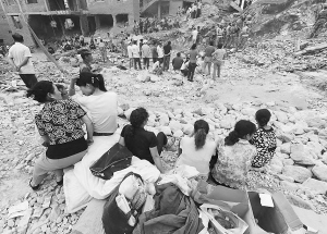 人群中,42歲的薛愛娣有些不知所措,她沒帶救援工具,也沒多大力氣,幫不上忙。在一處廢墟邊坐了許久,她起身離開,半個(gè)多小時(shí)后,有些吃力地搬來了兩個(gè)箱子。