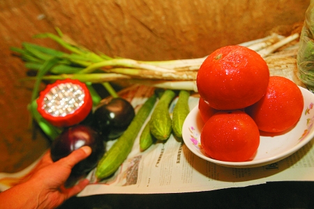 沿著水泥修葺的臺(tái)階而下,記者感到非常涼爽,前行約兩米,一間約10平方米的住所呈現(xiàn)在眼前。房間四周刷得雪白,床上的被褥干凈,音響、書(shū)架擺放在床前。床的兩端,挖掘出高2米、寬約70厘米的巷道,在昏暗燈光的照射下,靜謐、溫馨。巷道墻壁上,被挖出多個(gè)平臺(tái),哈密瓜、啤酒、黃瓜等放置在上面。“地下室19攝氏度,把食品放這兒,就像放冰箱里一樣!标愋履暾f(shuō)。
