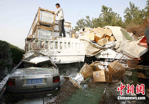 中新網(wǎng)武漢10月16日電 (記者 徐金波 張芹)受大霧天氣影響,京港澳高速湖北段16日連續(xù)發(fā)生多起車禍,數(shù)十臺(tái)汽車在3公里內(nèi)連環(huán)相撞,武漢孝感兩地?cái)?shù)百人聯(lián)手開(kāi)展生命大救援。截至目前至少已造成8人死亡23人受傷,京港澳高速澳京方向車輛滯留近5個(gè)小時(shí)。