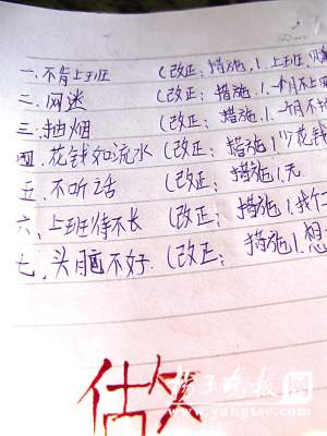 記者在浩浩家中看到了浩浩寫的一些自己的缺點(diǎn):“不肯上班”“網(wǎng)迷”“抽煙”“花錢如流水”“不聽話”等等,這些字跡可能是浩浩生前最后的筆跡,也說明了他自己也意識(shí)到了自己的缺點(diǎn)。浩浩家的一位鄰居告訴記者,黃德林夫妻四年前離婚,浩浩平時(shí)和黃德林生活,但父子兩人在一起時(shí)間并不多。