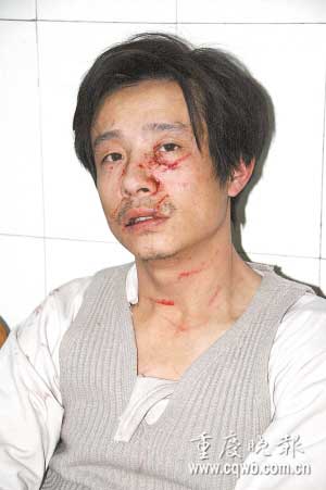 受傷的哥叫杜武,今年36歲,身體瘦弱,身高不到1米6,戴著一副近視眼鏡。昨日,杜武還躺在潼南縣人民醫(yī)院接受治療,面部傷痕累累。