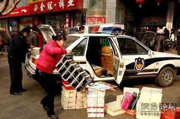 發(fā)帖者網(wǎng)友“明宇”在名為《何等猖狂:山西臨汾開著無牌警車做買賣》的帖子中稱,他在臨汾市中心繁華區(qū)遇到兩輛無牌“警車”。其中一輛停在某市場門口的路邊,從車上下來一名穿制服但沒戴帽子的“警察”。這名“警察”與一婦女一起從車上往下卸貨。從發(fā)帖者上傳的照片看,“警車”的后排座位上和后備箱里都裝滿了貨,兩人卸下的包括鞋盒、塑料袋等貨物擺了一地!霸鯓邮褂镁噰矣袊栏竦囊(guī)定,不知這位警察是否知道?”發(fā)帖者說。