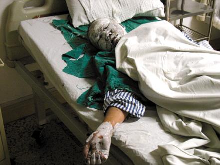 爆炸發(fā)生在昨日早上8時20分。據(jù)12歲的傷者盧彩連回憶,當時她正在插引線,看到廠里的何師傅拿著的一枚爆竹下面著火了,她趕緊就往外跑,剛跑到門口爆竹就爆炸了。三聲巨響,巨大的沖擊波將廠房的玻璃化成了碎片,五間磚房構成的爆竹廠在瞬間坍塌,爆竹廠上方形成了宛如蘑菇云狀的滾滾濃煙,方圓60平方米的地方變成了一片廢墟,盧彩連也被氣流拋出了幾米開外。“我干活的那間房有30多枚已經(jīng)插好引線的爆竹,在另外的房間里還有幾百枚爆竹和近50斤火藥,爆炸后,我掙扎著起來,立刻感到臉上、腳上到處都是灼傷的疼痛!北R彩連告訴記者。