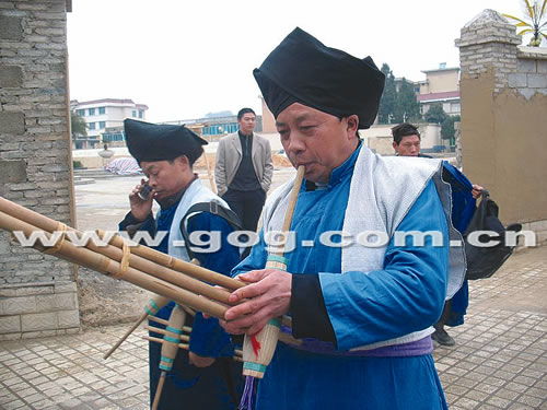 據(jù)專(zhuān)家講,在這支苗族中,女人是將竹片戴在頭上,而男人們則是將竹片供在房屋中,死后作為陪葬。