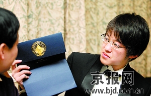受美國(guó)國(guó)會(huì)青年領(lǐng)袖委員會(huì)邀請(qǐng),本月17日,人大附中高三(4)班學(xué)生李木子即將啟程赴美,參加美國(guó)首位黑人總統(tǒng)奧巴馬的就職儀式。小李從初中時(shí)起便對(duì)國(guó)內(nèi)外的時(shí)政大事很感興趣。去年夏天,李木子和人大附中的另外2名同學(xué)參加了在美國(guó)舉行的“全球青年領(lǐng)袖會(huì)議”。會(huì)議期間,他們?cè)诩~約的“模擬聯(lián)合國(guó)”內(nèi)就全球能源、環(huán)境、氣候等熱點(diǎn)問(wèn)題發(fā)表演講。李木子還扮演“俄羅斯駐聯(lián)合國(guó)大使”,與世界各地的優(yōu)秀高中生討論、磋商有關(guān)“國(guó)際性問(wèn)題”。嫻熟的英語(yǔ)、準(zhǔn)確的表達(dá)、獨(dú)到的見解,博得與會(huì)同齡人的喝彩和主辦方的賞識(shí)。就在奧巴馬獲得民主黨總統(tǒng)候選人提名的當(dāng)天,李木子也收到了一份特殊的邀請(qǐng)函——“參加美國(guó)新任總統(tǒng)就職儀式函”。當(dāng)時(shí)他并不知道自己會(huì)成為北京唯一一名獲邀學(xué)生代表。