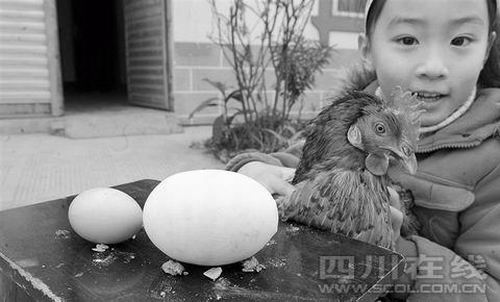 對此,四川農(nóng)業(yè)大學動物科技學院教授劉益平說,“一般這樣大的異形蛋是在雞蛋已成型后被輸回去的,很可能是蛋包蛋!