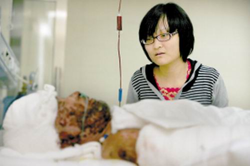 前幾天,在南京打工的父親重度燒傷,南京醫(yī)院給她打來電話,說她父親病危。她以為是騷擾電話,晚三天才趕到南京,從幾千里外,將已燒得不成人樣的父親運回故鄉(xiāng),送到吉林省武警總隊醫(yī)院。如今,為了給父親籌集醫(yī)藥費,20歲的她又踏上打工路。
