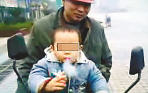 這段長(zhǎng)達(dá)四分半鐘的視頻是一名網(wǎng)友十天前發(fā)布的,聲稱是在萬(wàn)州周家壩現(xiàn)實(shí)攝錄,視頻上面一名兩三歲的小男孩坐在一輛大人的摩托車前部,在一群成年人一陣“燒起”的起哄聲中,開(kāi)始表演點(diǎn)火抽煙。