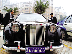昨日,記者在論壇上看到,天涯網(wǎng)友“還說啥”貼出了兩張同樣懸掛著“渝A66666”藍底色車牌的豪華車,其中一輛為一臺限量版的日本光岡老爺車,據(jù)估計價格約為一千萬元人民幣。網(wǎng)友還指出,老爺車好像是重慶一開發(fā)商的。