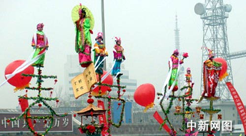 中新網(wǎng)2月9日電(劉一 長年)元宵節(jié)當(dāng)天上午,山西臨汾市平陽廣場熱鬧非凡,2009年元宵節(jié)社火表演正在熱烈進行中。