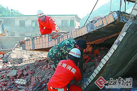 據(jù)介紹,當(dāng)日12時(shí)12分,羅平消防大隊(duì)接到縣指揮中心指令稱(chēng):阿魯鄉(xiāng)樂(lè)戈必小學(xué)的一所兩層樓的危房倒塌,兩名群眾被埋,生死不明,情況十分緊急,請(qǐng)求救助。消防大隊(duì)立即成立救援指揮部,下設(shè)偵查、警戒、保障、戰(zhàn)斗等4個(gè)救援小組,迅速出動(dòng)1車(chē)5名消防官兵火速趕赴事故現(xiàn)場(chǎng)。