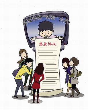 快速閱讀:“大都市的愛情都太膚淺,太容易得到,也太容易失去。需要好好實習(xí)一下,才能懂得愛情的真諦!苯,21歲的姜楠在網(wǎng)上發(fā)出一份《戀愛協(xié)議》,征集女性朋友和他談一次協(xié)議戀愛。他把這樣做的目的解釋為:體驗婚姻過程,學(xué)會珍惜,對以后真正的婚姻負責(zé)。