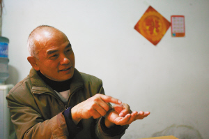 本月11日,記者在歇臺(tái)子附近一間寬敞的民房里見到鄒育林,滿頭白發(fā),一臉滄桑,63歲的他看起來比一些同齡人出老很多。“我給朋友保證了,欠他們的錢,連利息,我一定會(huì)還清的!