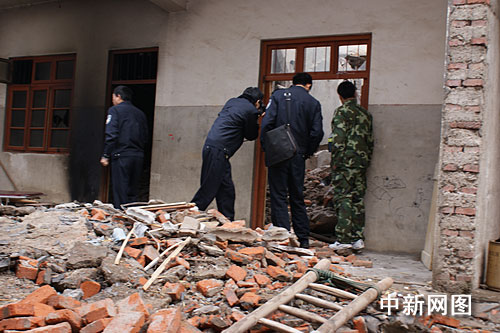 消防隊員到達現(xiàn)場時看到坍塌現(xiàn)場一片狼藉,到處是破碎的磚瓦,樓房第一層三間房子均被大量磚瓦埋壓,其中位于中間部位的房子坍塌最為嚴重。經(jīng)詢問得知,這就是兩名幼兒被埋壓的房間。