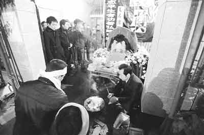 申天志一對(duì)20多歲的兒女披麻戴孝,申天志的妻子因悲傷過(guò)度沒(méi)有露面。