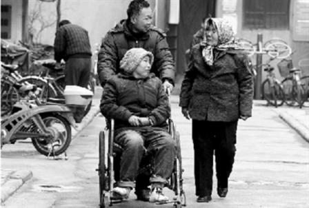 街坊們經(jīng)常用各種辦法幫助這個(gè)家:女兒的學(xué)費(fèi)是鄰居們湊的,經(jīng)常給他們送衣服、送飯,為了能讓曹青云站起來,還幫他們申請(qǐng)了全額低保,拉到贊助單位幫她定做了一個(gè)輪椅。