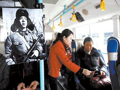 該公司相關人士介紹,601路隊已被公司命名為“雷鋒路隊”,該路隊的20輛公交車,將在車廂內的車窗上方,張貼雷鋒的照片和語錄。