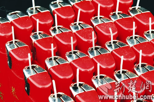 夜市上有三四家賣火機(jī)的攤位,其中一個(gè)攤主是位平頭男子!袄习逵袥]有這樣的火機(jī)?”記者向平頭男子展示了“麻果火機(jī)”,他拿著火機(jī)把玩了一下,笑著說(shuō),這就是普通火機(jī)改造的,將火嘴延長(zhǎng),小作坊生產(chǎn),需要專門的“班子”。