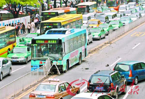 昨日(7)中午12時許,在廣州天河區(qū)崗頂公交車站前等車的趙先生目睹了電影中才會發(fā)生的一幕:一輛298路公交車猛地沖向馬路中間的護欄,滑行了近30米后才停下來。強大的沖擊力將十余個鐵制護欄連根鏟起。車上當時載有四五十名乘客,但只有司機受傷。據(jù)了解,該事故的起因竟是區(qū)區(qū)6元的車資找零。