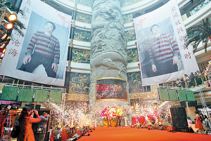 “海報上的人就是今天的壽星!爆F(xiàn)場賓客告訴記者,劉梁資產(chǎn)過億,作為回禮,給每位來賓發(fā)了一個精致的水晶煙灰缸,“這筆開銷就上10萬元。算上酒水,每桌酒席要3000元以上!