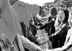 據(jù)了解,昨日的交友活動內容非常豐富,除了有傳統(tǒng)的拋繡球、掀紅頭蓋等環(huán)節(jié),還增設了浪漫接力跑、財富沙龍、英語沙龍、真情告白等項目。蔣建華解釋:“‘浪漫接力跑’等運動尋緣項目主要是針對愛好運動的年輕人士而開設的。喜歡安靜的朋友也可以選擇在‘財富沙龍’上交流自己的成長經(jīng)歷、創(chuàng)業(yè)故事。另有‘英語沙龍’等等不同形式的尋緣項目,以求用不同活動內容率先為廣大參與者選擇志同道合的人!