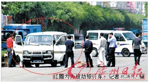 隨后,面包車上下來兩名男子,他們立即向警方報警。隨后大批民警及治安隊員趕到事發(fā)現(xiàn)場進行調(diào)查取證。