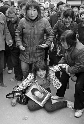 3月13日上午9時,鞭炮清脆炸響,不是因?yàn)橄矐c而是送喪。運(yùn)送徐梗榮尸體的面包車從陜西省丹鳳縣醫(yī)院駛出又停下。徐的母親及大姐癱坐地上,放聲慟哭。她們不滿縣公安局不兌現(xiàn)承諾:出動一輛警車在前開道。一番僵持,一輛巡警車終于開來,徐梗榮,這個19歲少年的尸體在警車開道下,被送回40公里外的寺坪村家里。