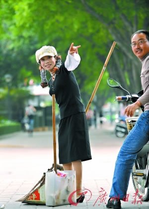 近日,有網(wǎng)友在天涯論壇上發(fā)帖,感嘆她是“最美麗、最時尚的清潔工”。