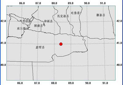 據(jù)測(cè)定,此次地震震中位于北緯 41.0°, 東經(jīng) 88.4°。目前還沒有人員傷亡和財(cái)產(chǎn)損失的報(bào)告。