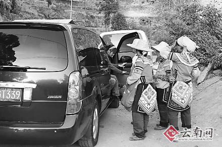 記者發(fā)現(xiàn),在老虎嘴景點(diǎn)的公路邊上,每天都有許多的女童在向游客纏售梯田明信片。只要游客一下車,她們立馬就圍上去,有的可以纏上半個(gè)小時(shí),如果有一游客買了其中一人的,其他女童就會(huì)立即圍上來纏賣,弄得游客的心情極不愉快。