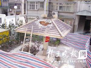 記者在該小區(qū)看到,一架爬梯搭在涼亭頂部,廢磚石塊散落一地,周圍用帆布圍起來,涼亭頂部露出兩個(gè)直徑約一米寬的大窟窿,柱子底部已經(jīng)被人鑿出凹面。該小區(qū)物管公司負(fù)責(zé)人對(duì)記者說,涼亭是上個(gè)月下旬被小區(qū)一姜姓女業(yè)主砸毀的,帆布和告示牌都是她設(shè)置的!凹依锇l(fā)生一連串怪事,后來聽人說都是因?yàn)檫@個(gè)涼亭壞了風(fēng)水!38歲的姜女士對(duì)記者說,前年4月份她在該小區(qū)買了現(xiàn)在居住的房子。“去年8月份,小姑子12歲的兒子,星期天外出開電瓶車,出了交通事故,把腿撞斷了,一年后才把腿傷治好。還有去年丈夫在上海做廢鋼生意,虧了幾百萬元。另外,我有心臟病,身體一直不好……”姜女士說,一連串的不幸讓她心情變得壓抑。后來,她聽人講,小區(qū)里的涼亭正好對(duì)著她家陽臺(tái)的窗戶,壞了家中風(fēng)水。于是,她于2月24日喊人把小區(qū)涼亭砸了。