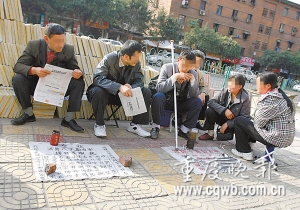 “江湖人稱李半仙,算了10多年,包準(zhǔn)!”昨日下午,渝中區(qū)解放西路66號(hào)門前,一位算命先生這樣推銷自己。旁邊五六個(gè)算命先生出來拆臺(tái):“啥子半仙,前幾個(gè)月明明還在擦皮鞋!”