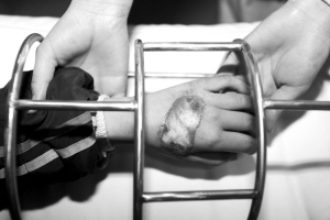 吳建斌很快被送到墊江縣人民醫(yī)院救治!昂⒆拥氖直凼巧疃葼C傷。”醫(yī)生李潤(rùn)生十分吃驚,當(dāng)了解到是老師故意燙傷時(shí),怔怔地半天沒有說一句話。隨后,燙傷后一直隱瞞的陳余也被吳建斌“揭發(fā)”。經(jīng)過救治,目前3位同學(xué)的傷情已經(jīng)得到控制。