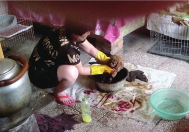 貴婦狗每染過(guò)一次顏色就加深一些,漸漸接近褐紅色,魏某笑著說(shuō):“你看神奇吧,貴婦就慢慢變成泰迪了!彼f(shuō)現(xiàn)在狗市上做過(guò)活的狗很多,但是做完后都不會(huì)拿到狗市里的正規(guī)店鋪里賣,只在散市賣!斑@樣賣出去人找不到你,比較保險(xiǎn)”。
