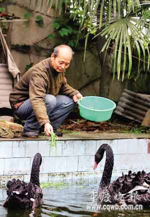 昨日,在北碚區(qū)施家梁鎮(zhèn)一院壩中,看著在池塘里悠閑游泳的黑天鵝,55歲的王國(guó)華愁眉不展。