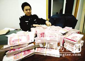 面對如此巨款,聞訊趕來的110巡邏民警顯得非常謹慎。他們迅即將巨款押運到濱湖派出所。在派出所內(nèi),在眾人的監(jiān)督下,民警開包查驗巨款,“十萬,二十萬,三十萬……”清點的過程漫長而又謹慎,總額達到百萬以上。除了現(xiàn)金外,旅行包里還發(fā)現(xiàn)一個文件袋,里面有記賬,上面寫著“5萬、10萬”等字樣,還有一張中國農(nóng)業(yè)銀行的五萬元匯票。單位寫著“永春縣××廣播電器有限公司”、“星星××公司”的字樣。截至記者昨晚11點發(fā)稿時,失主仍未出現(xiàn)。(吳勝)