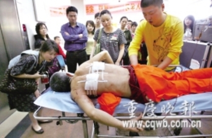 昨日下午5點,環(huán)衛(wèi)工魏泉茂被送到市急救中心搶救。他背部雙側(cè)被砍傷,最深處為5厘米,肩胛骨被砍斷,幸無生命危險。據(jù)魏泉茂說,當(dāng)時他在凱旋路附近做清潔,一輛灰色轎車欲停在他正在清理垃圾的地方。魏泉茂表示,等清掃干凈了再讓開。雙方爭吵起來。隨后,魏泉茂推著垃圾車來到了儲奇門垃圾站對面。一名男子突然持刀沖向他,一來就是兩刀。隨后,男子招下一輛出租車逃跑。魏泉茂說,砍他的人就是與自己爭吵的那名司機。目前,儲奇門派出所正在調(diào)查此案。(朱雋 龍珊)