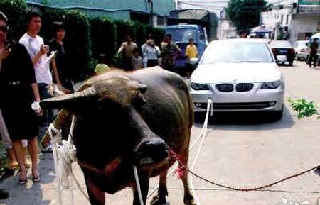去年7月,她在廣州的鬧市中,上演了一出老牛拉寶馬的“拉風(fēng)”事件。當(dāng)時(shí),因?yàn)椴刨I不久的寶馬車出故障,馬映華沒有得到滿意和及時(shí)的解決而與經(jīng)銷商發(fā)生爭執(zhí),一氣之下,她找來了一頭水牛拉著寶馬車在維修點(diǎn)前“示威”。