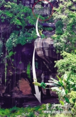 木門內(nèi)是一閑置的小院子,地面長有青苔,除了靠懸崖一邊有堵圍墻外,沒有其他出口,F(xiàn)場沒有看見兒子,鄧希友踩著靠墻的一堆木材站上圍墻,發(fā)現(xiàn)懸崖下有擦掛的新鮮痕跡。鄧希友心中一涼。